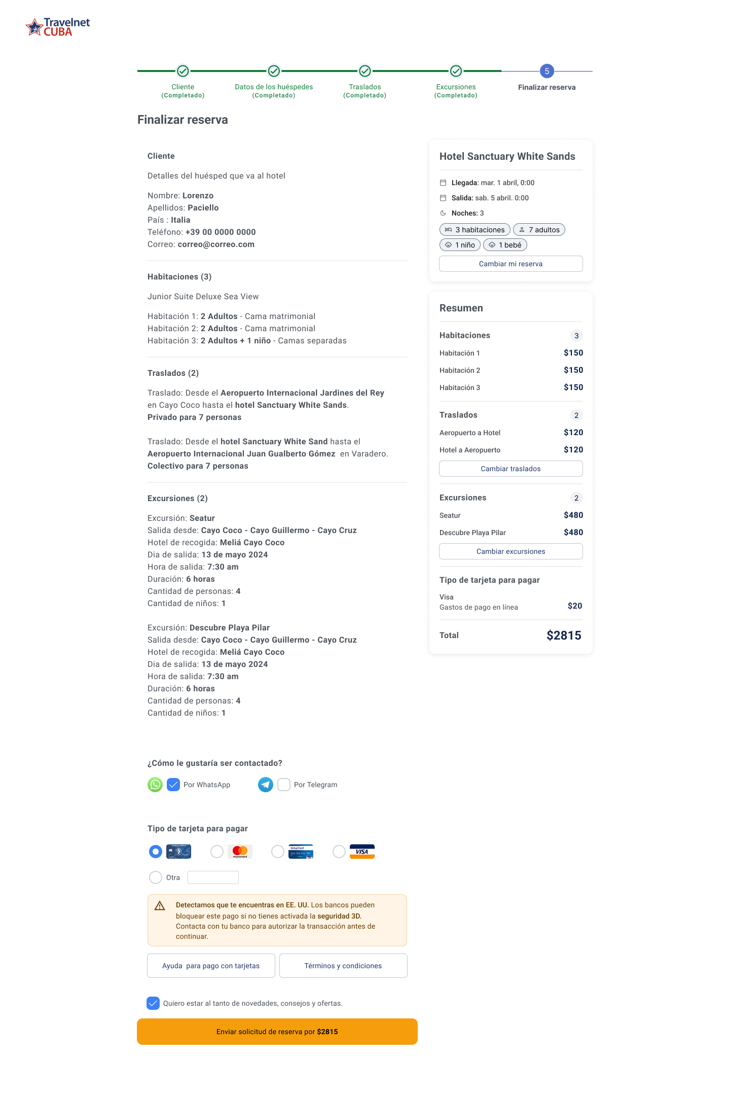 - Flujo de reserva paso a paso optimizado